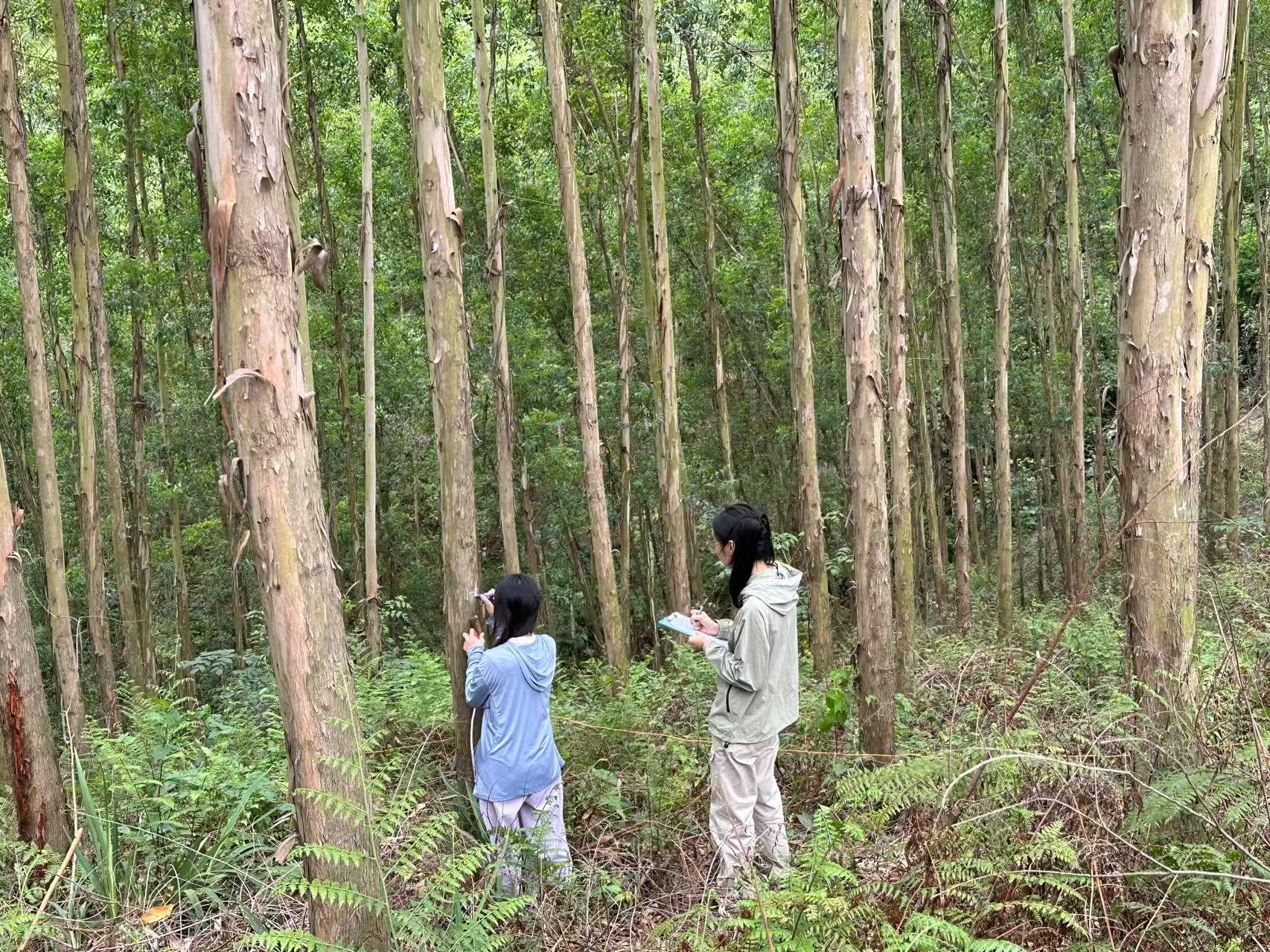 学生进行伐区林分调查