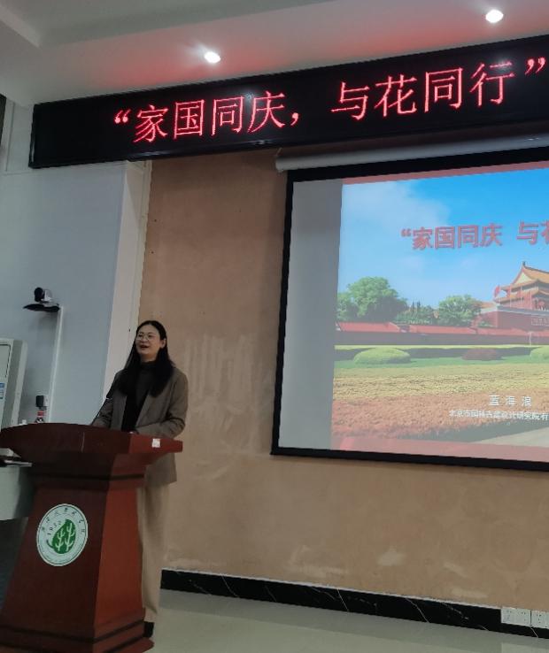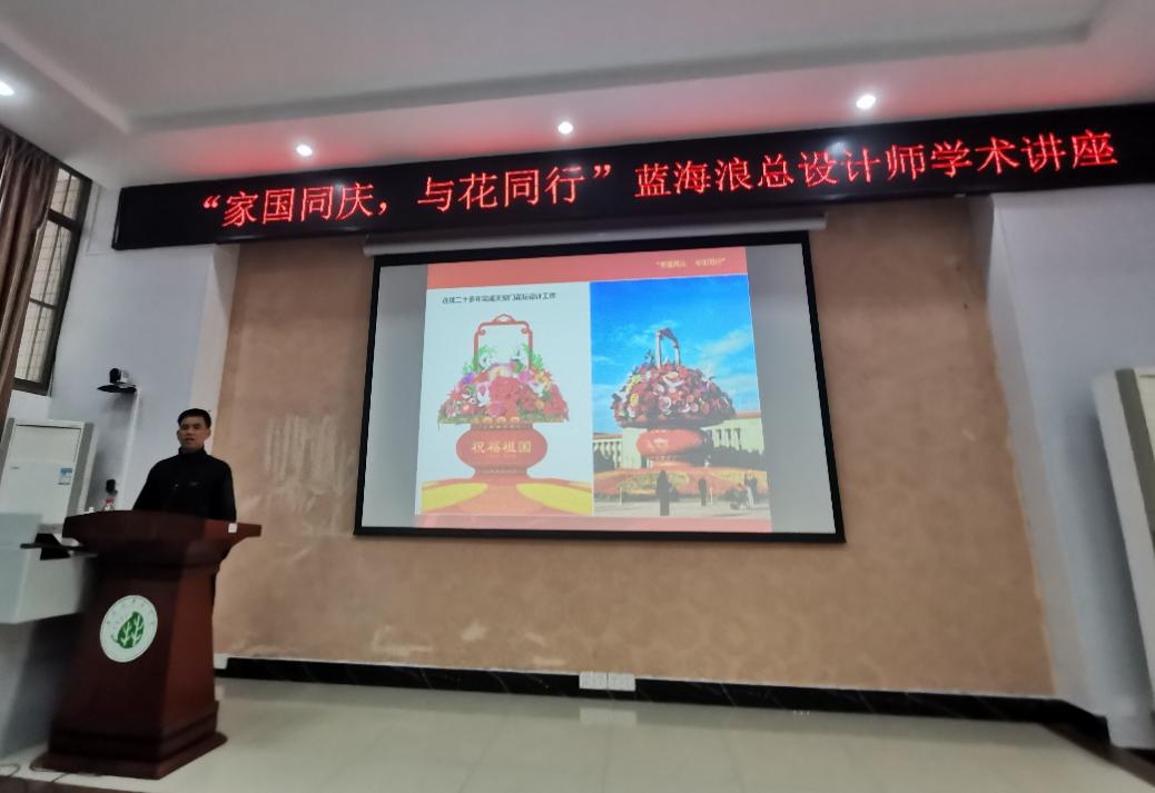 蓝海浪老师深耕园林景观领域数十年,被誉为“中国花坛第一人”,连续二十多年主持天安门广场及长安街国庆花坛设计工作,亲历并打造了很多彰显家国情怀的园林艺术经典。讲座中,他以时间为脉络,系统拆解国庆花坛从主题构思、方案设计、植物造型到现场搭建的全流程,结合中华人民共和国成立70周年庆祝大会、北京奥运会、冬奥会及“九三”阅兵等重大活动的环境布置实践,生动讲述了如何通过园林景观传递时代精神、营造庆典氛围。