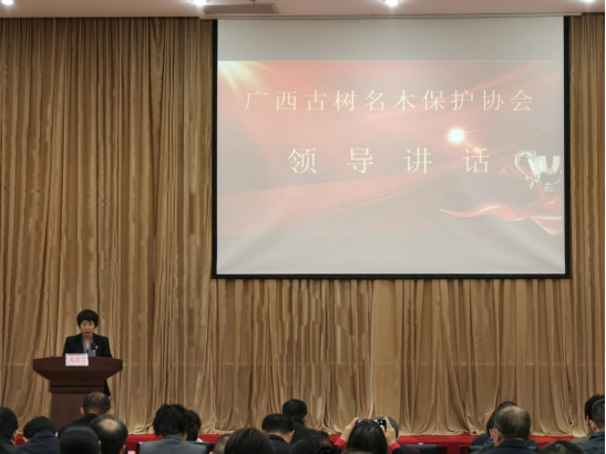 (广西古树名木保护协会第一届会长王凌晖发表讲话)